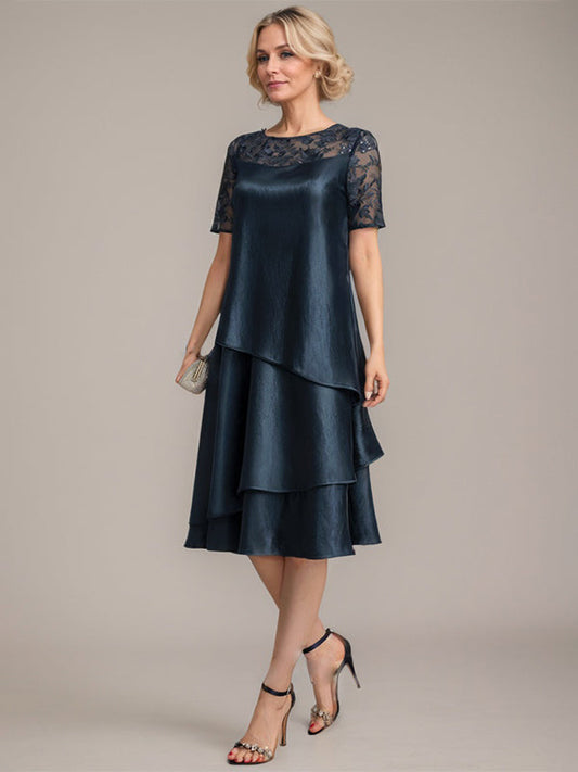 Vestido de gasa con encaje y escote redondo hasta la rodilla para madre de la novia