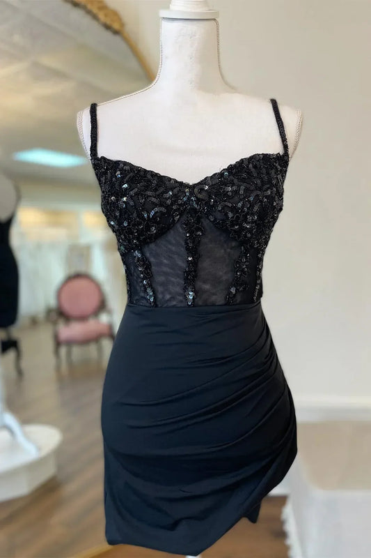 Heahter | Vestido de fiesta ajustado con lentejuelas y corsé negro brillante