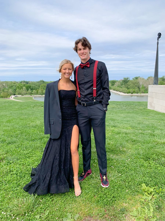 Vestidos de fiesta largos de encaje negro con corte sirena sin tirantes y abertura alta, vestidos de noche formales de graduación negros Y4782