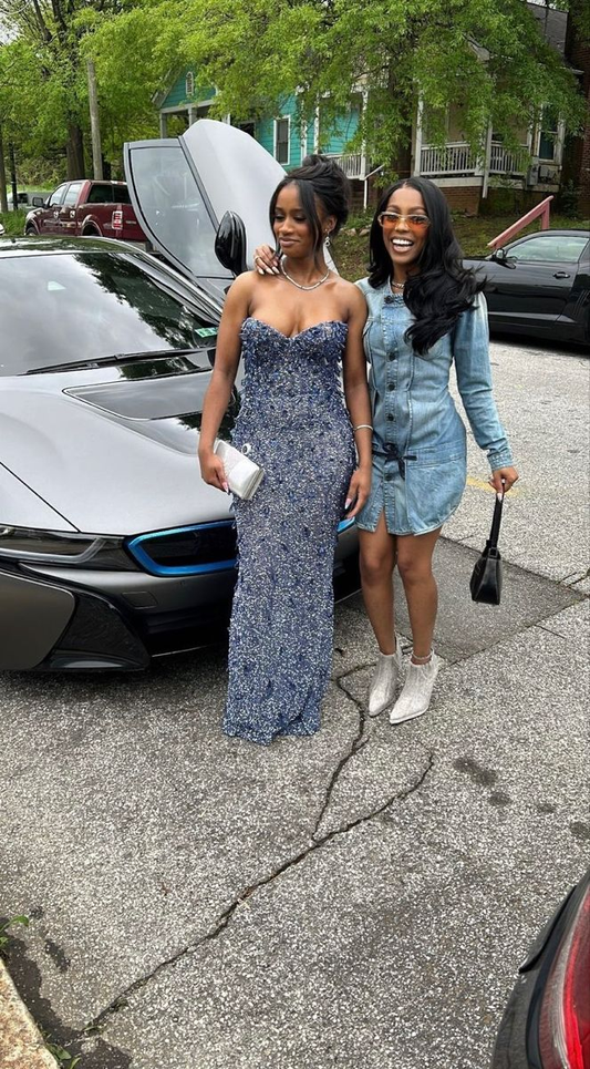 Glamuroso vestido de noche sin tirantes y largo hasta el suelo para chicas negras Y4792