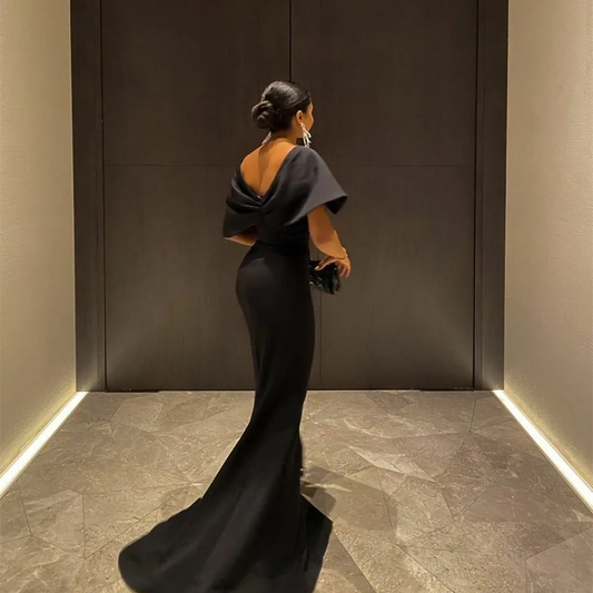 Elegante vestido de noche negro largo con abertura en los hombros, corte sirena, para mujer, Y4760