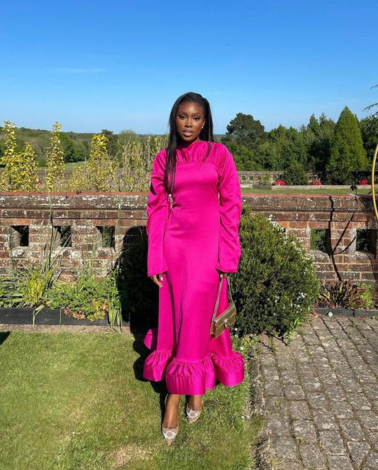 Elegante vestido de fiesta largo para mujer, vestido de noche de manga larga con volante en el dobladillo Y4793
