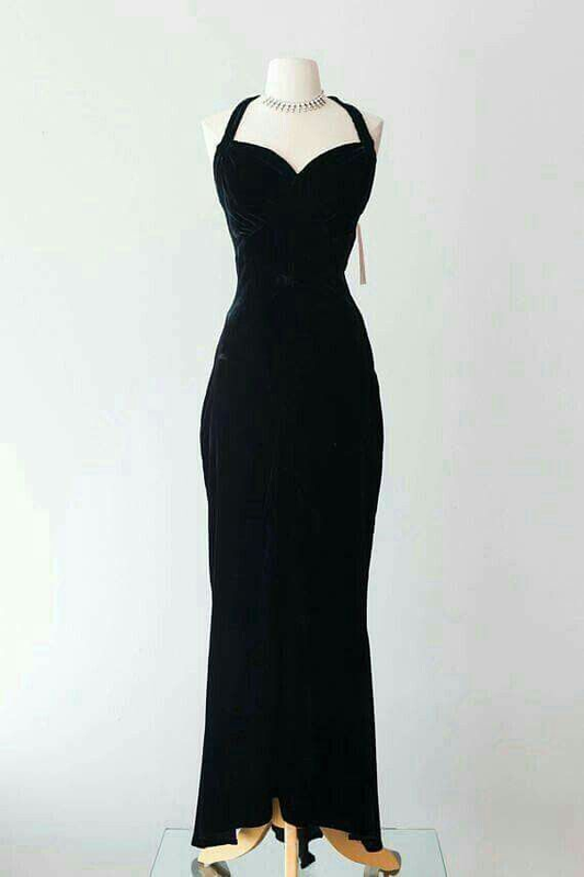 Vestido de noche vintage de terciopelo negro con cuello halter, estilo años 30, escote corazón Y4771