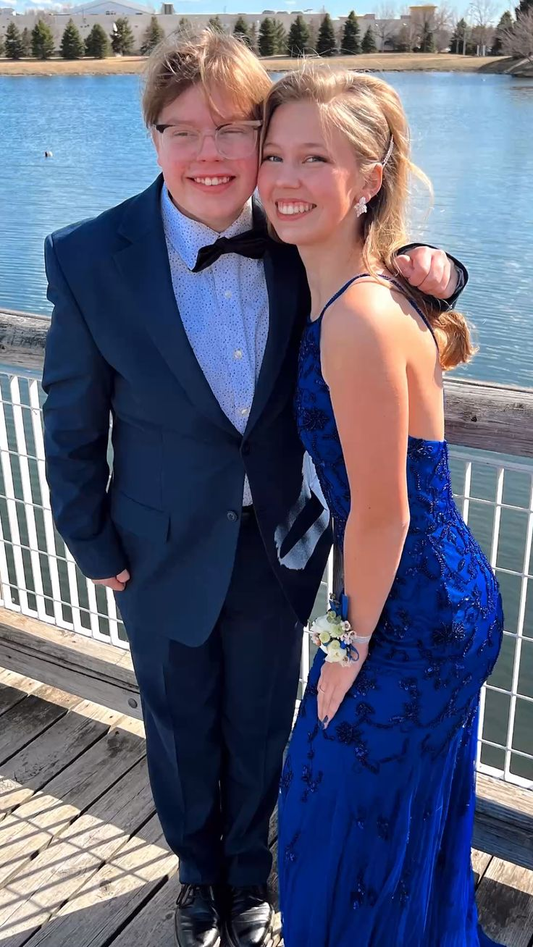 Glamoroso vestido de fiesta de sirena en tul azul rey, vestido de noche azul rey Y5316
