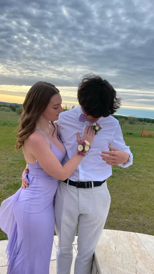 Vestido de noche lavanda con escote en V y corte A para invitada de boda Y5283