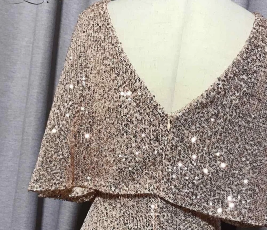 Vestido de noche sexy de sirena con escote en V y mangas cortas, elegante vestido de fiesta formal con mangas murciélago y purpurina Y1390