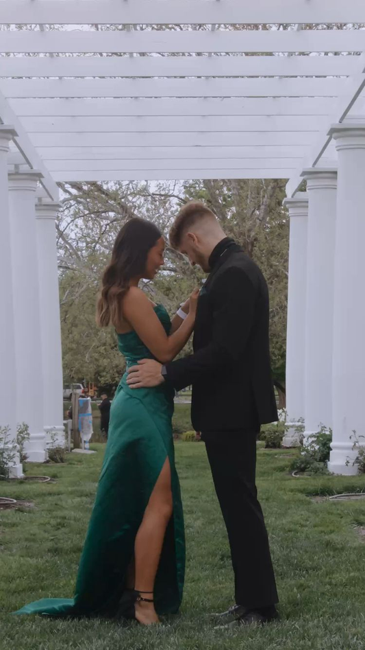 Vestido de fiesta largo de satén verde con escote corazón, vestido de noche encantador Y1735