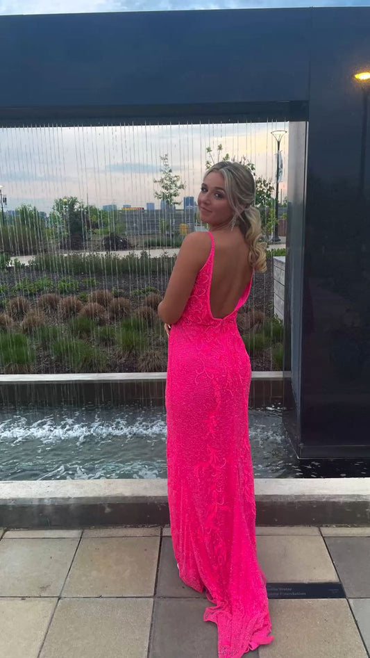 Elegante vestido de fiesta rosa intenso, vestido de noche sin espalda, vestido formal Y1717