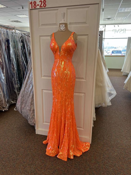 Vestido de fiesta largo de sirena con escote en V y lentejuelas naranjas, elegante vestido de noche, vestido formal naranja Y1714