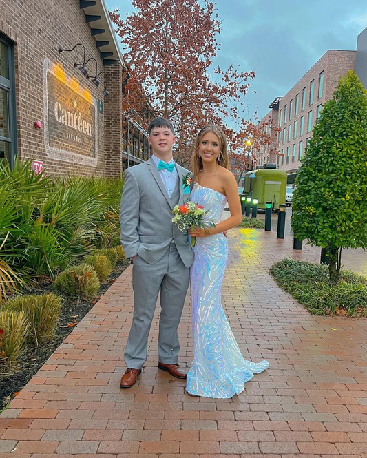 Vestido de fiesta elegante de sirena con un solo hombro y lentejuelas, vestido de noche Y1895