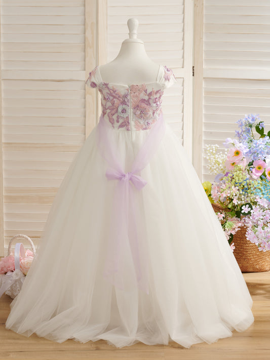 Vestido de tul con mangas largas y encaje blanco angelical para niña de las flores