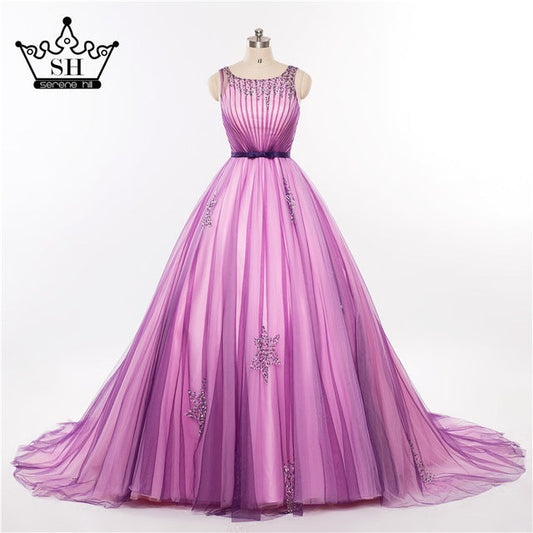 Vestido de noche elegante de sirena morado con lentejuelas y cuentas, sin mangas, LA6215