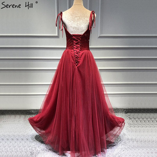 En oferta, sin devolución ni reembolso. Vestidos de noche de lujo en terciopelo rojo vino, corte en A, con cuentas, sexys, para mujer, fiesta, LA70956.