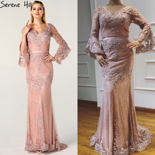 En oferta, sin devolución ni reembolso. Venta de vestidos de noche sexys de diseñador de Dubái con encaje rosa, vestido de noche estilo sirena LA6282