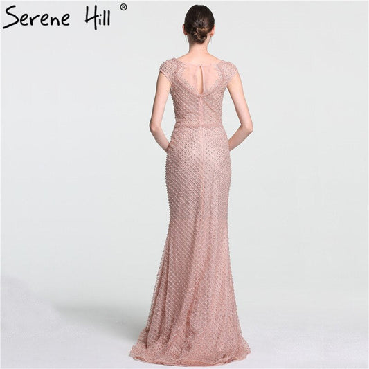 En oferta, sin devolución ni reembolso. Lo último en moda: elegante vestido de noche de sirena rosa con cuentas y tul, 2025. Foto real LA6113.