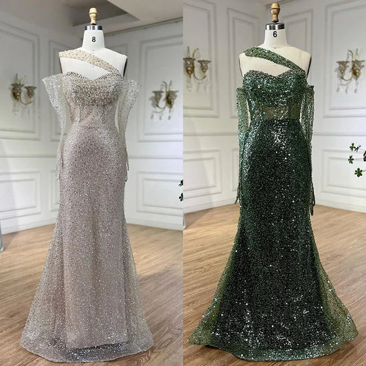Vestido de noche árabe de sirena con un solo hombro, elegante y lujoso, con cuentas, para fiesta femenina, LA72365