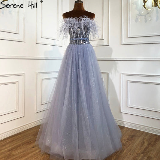 Vestidos de noche grises de lujo, corte A, 2025, con cuentas y plumas, sexys, para mujer, para bodas y fiestas LA70803