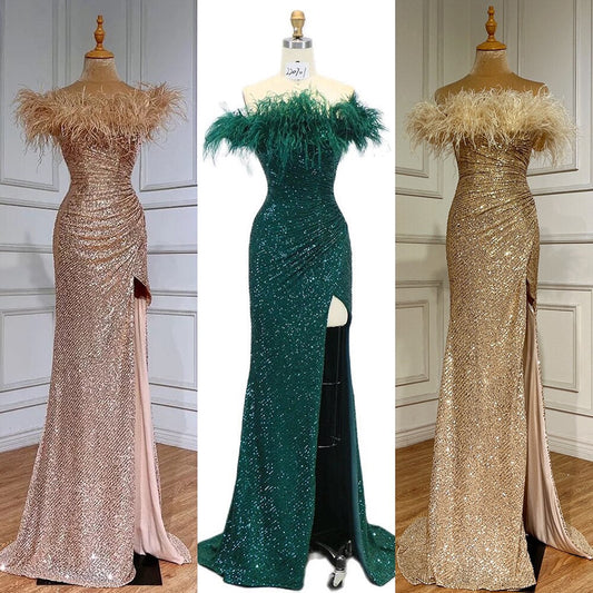 Vestido de noche formal de lujo con escote sirena, verde, sexy, con plumas abiertas, para mujer, para boda, fiesta, 2025, LA71848