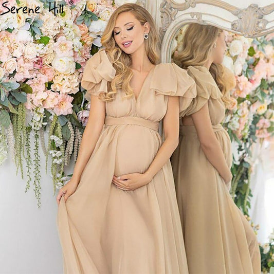 Vestidos de noche sencillos dorados de manga corta para fotografía de embarazadas 2025, HA2518