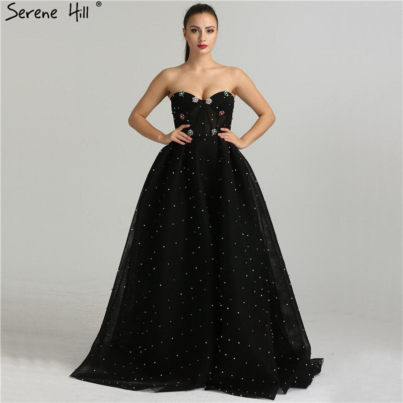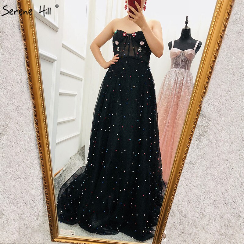 2025 schwarz Schatz Sexy Tüll Prom Kleider Neueste Diamant Perlen Off Schulter Mode Abendkleider LA6347