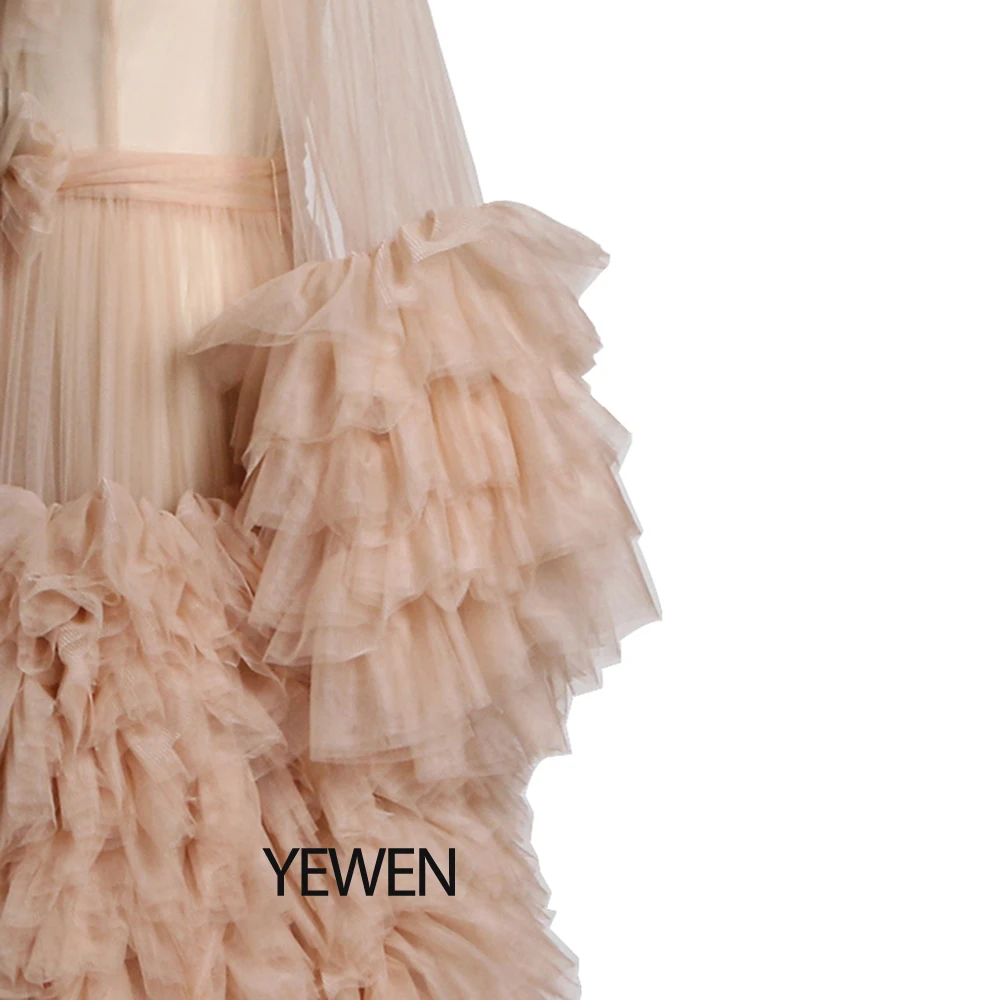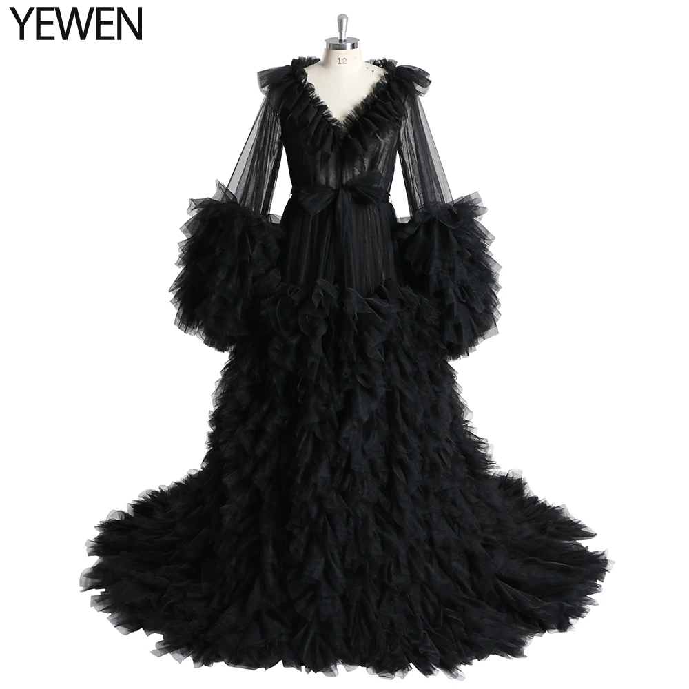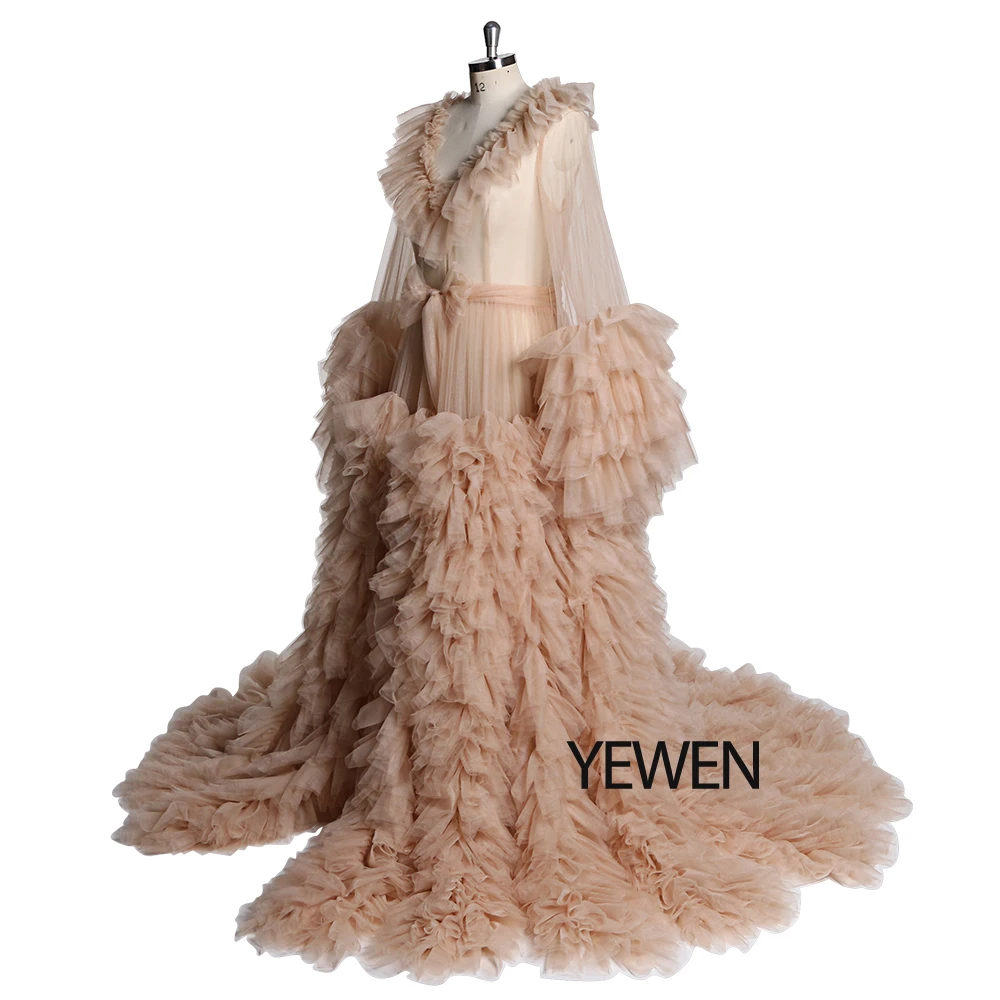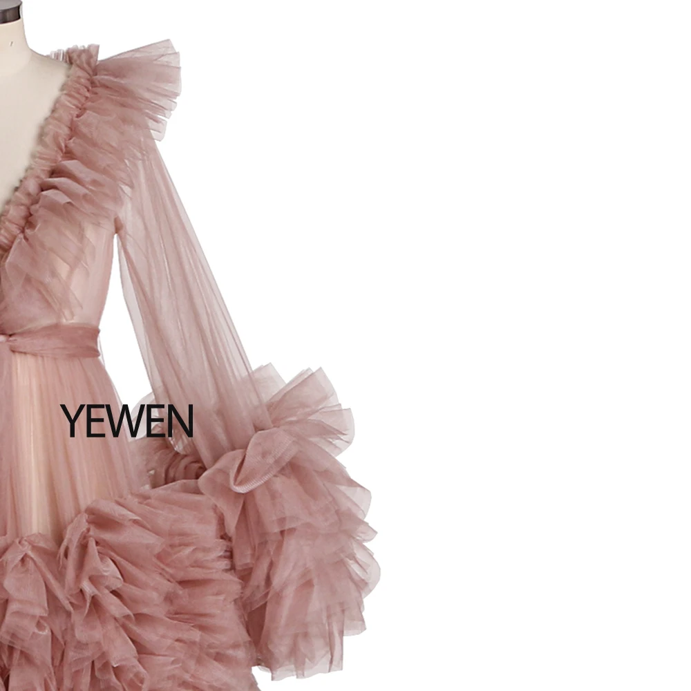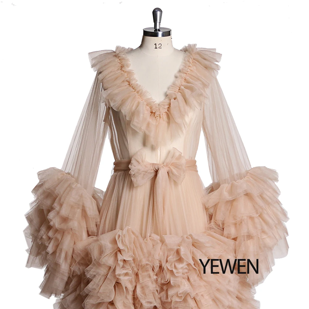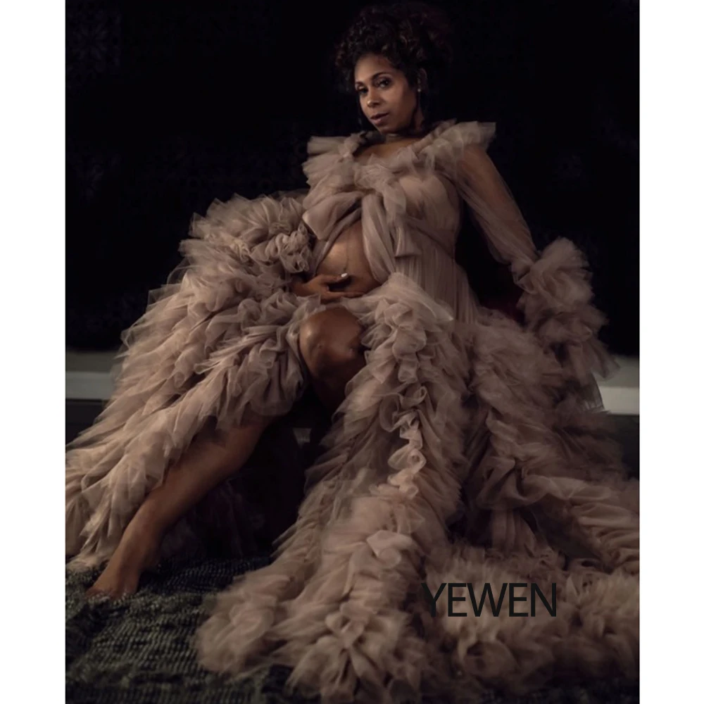 Lindo vestido de maternidad de tul para sesión de fotos, vestido de mangas largas con volantes para fotografía de embarazo, vestidos para baby shower Sunnderly