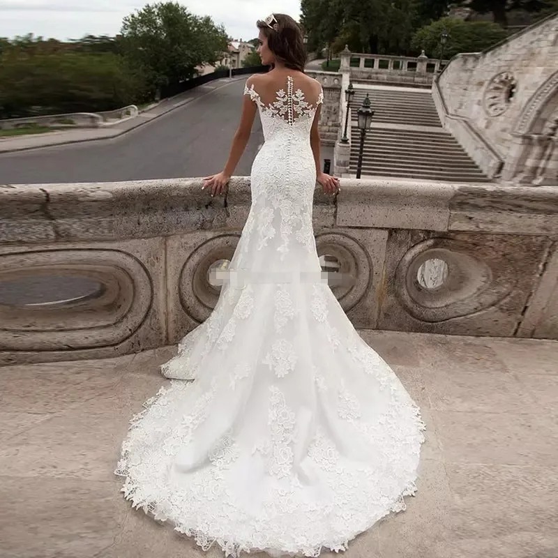 Elegante vestido de novia de satén beige con tirantes al descubierto bordados, corte sirena, largo hasta el suelo, ideal para bodas de noche.