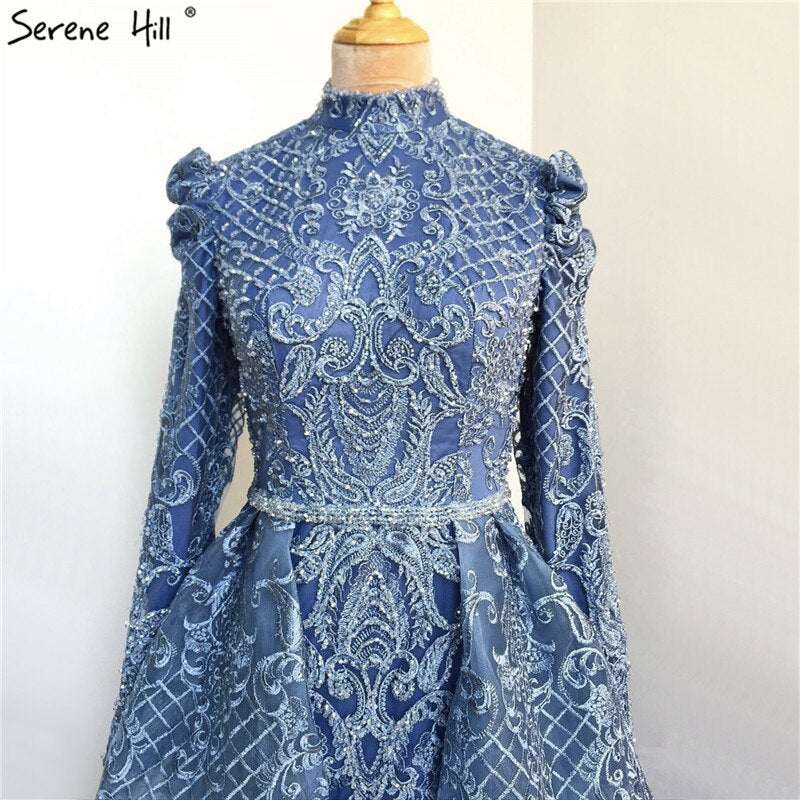 En oferta, sin devolución ni reembolso. Vestidos de noche musulmanes de manga larga con cristales negros, estilo sirena, de lujo, talla grande, LA70419.