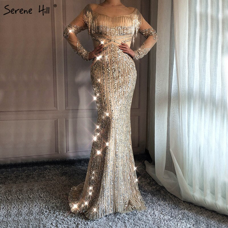 Vestidos de noche de lujo, ajustados y sexys, de manga larga, con escote sirena y borlas, de alta gama, LA6467, 2025