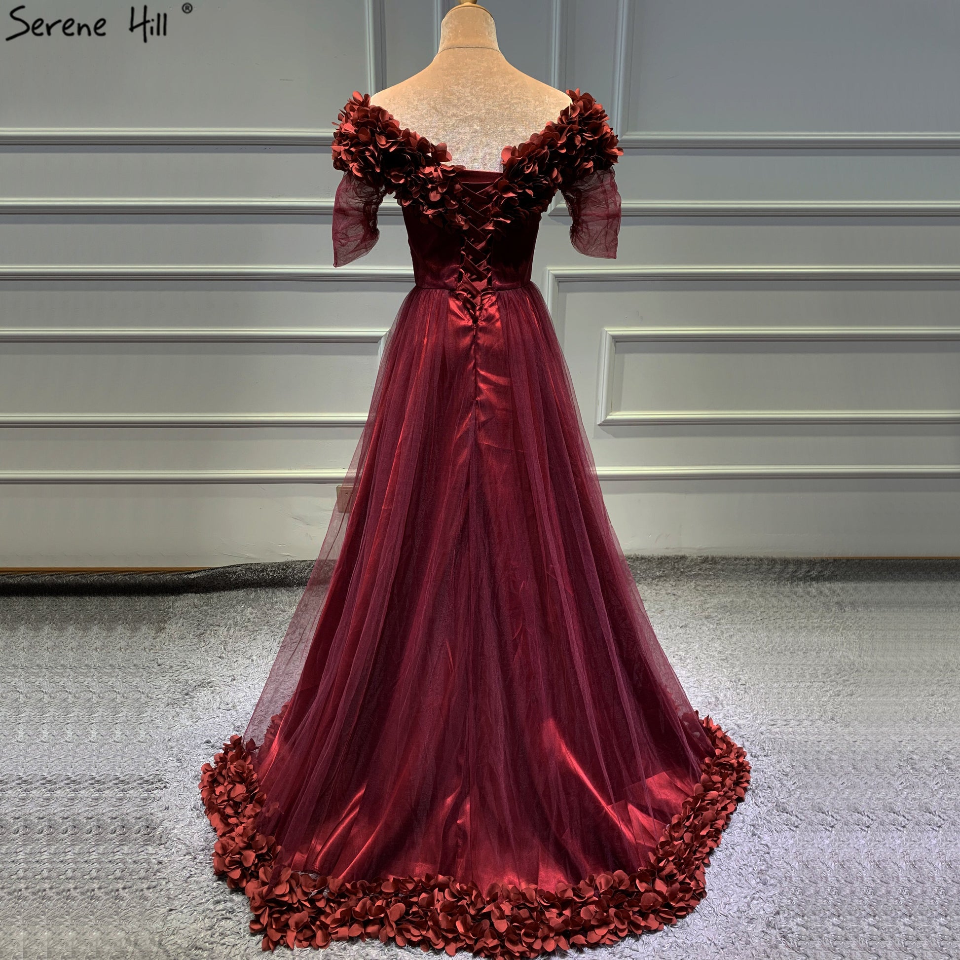 Vestido de noche de playa sexy y sencillo con hombros descubiertos, color rojo vino, 2025, mangas cortas, LA60762, vestido de noche para mujer