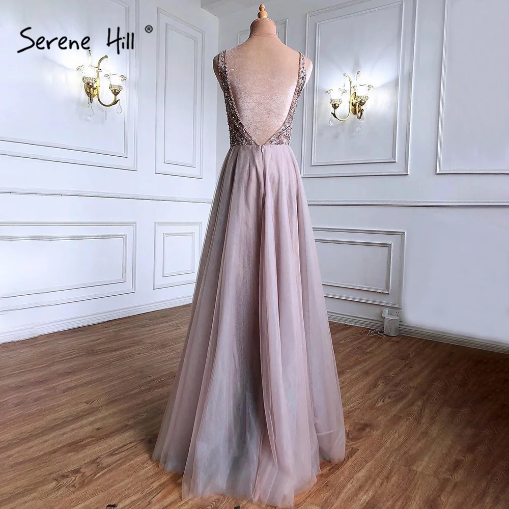Vestidos de noche rosas, sin espalda, corte A, con cuentas, sencillos y sexis, para mujer, para bodas y fiestas, LA71259