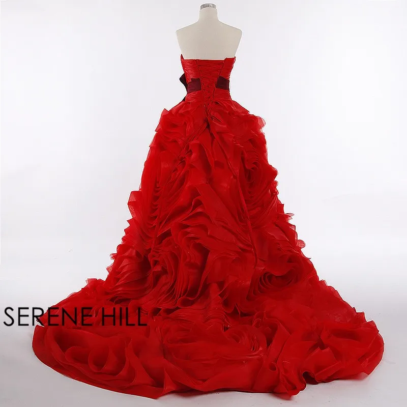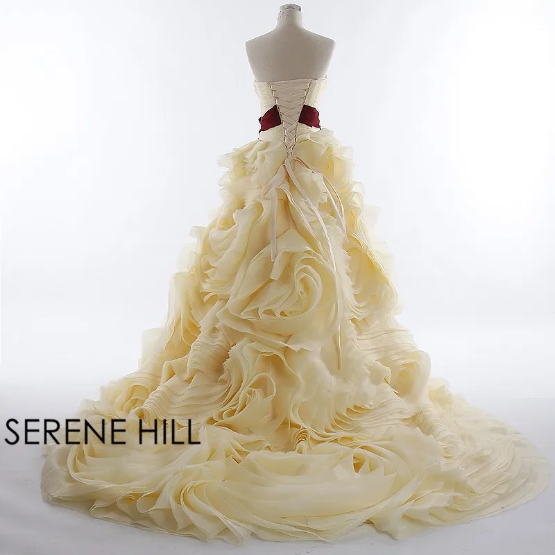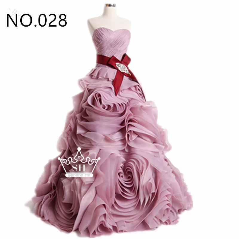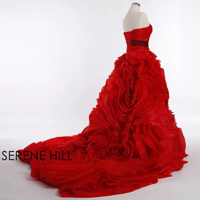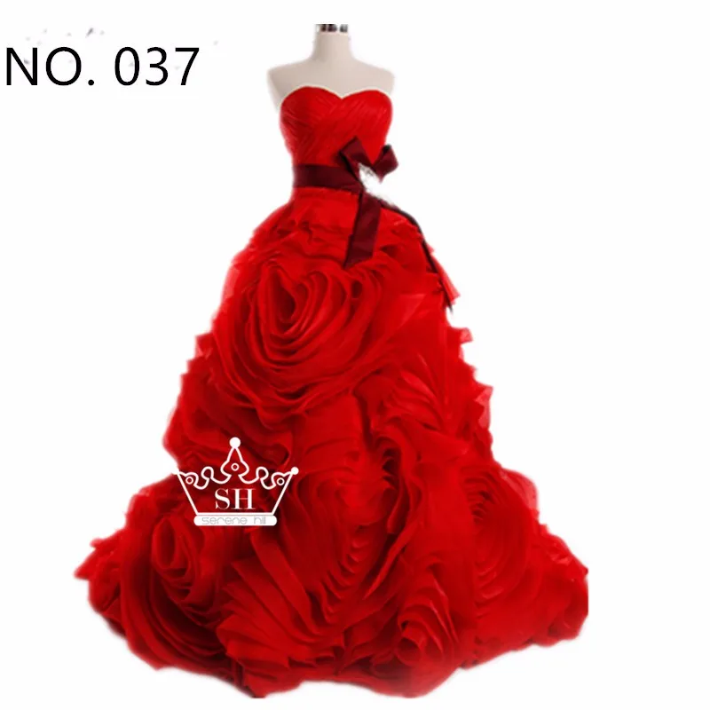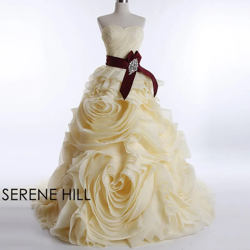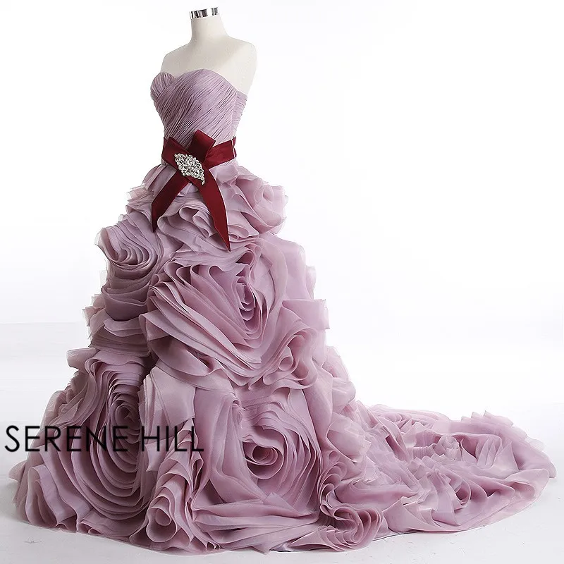 Foto real 2025 Diseño de marca Robe De Mariage Vestido de novia con volantes y cuentas de cristal Borgoña Vestido de novia HM6681