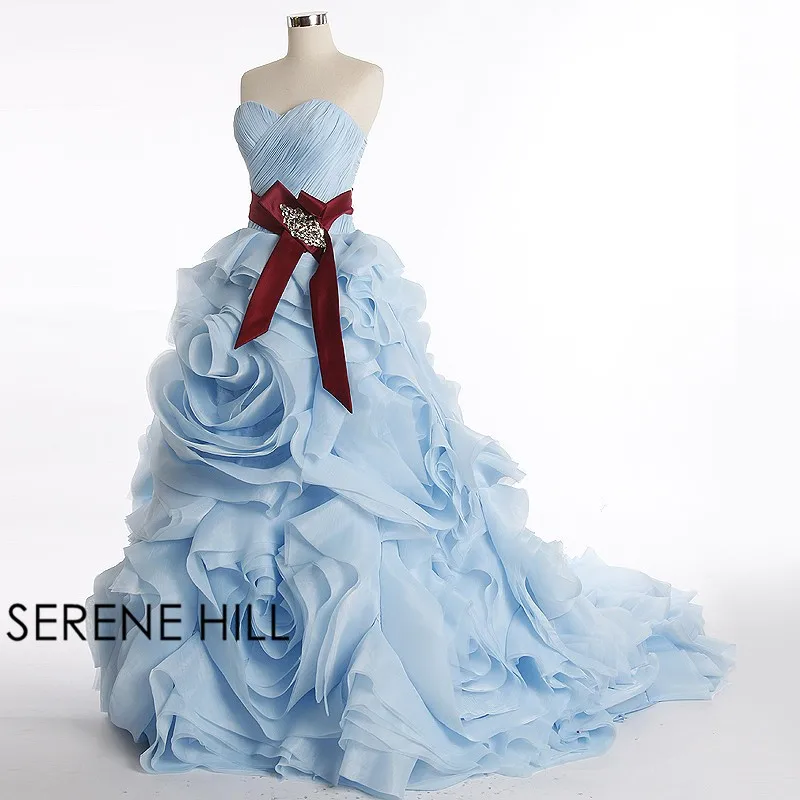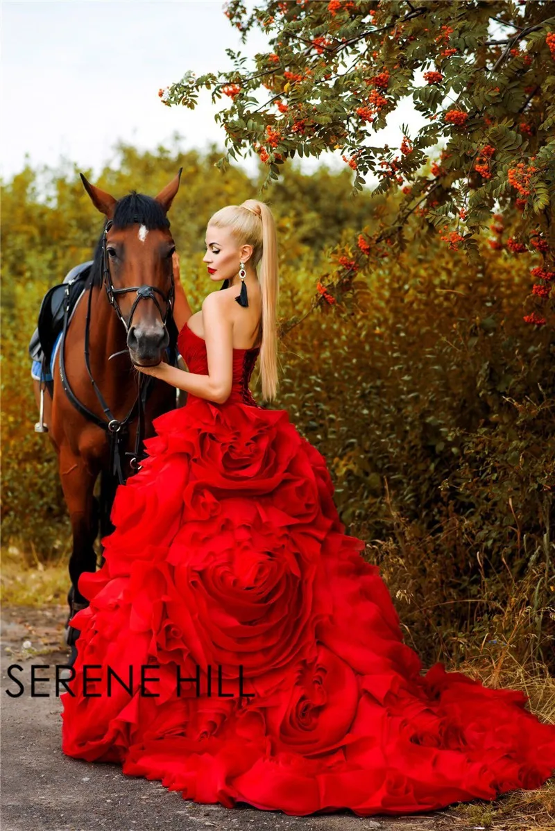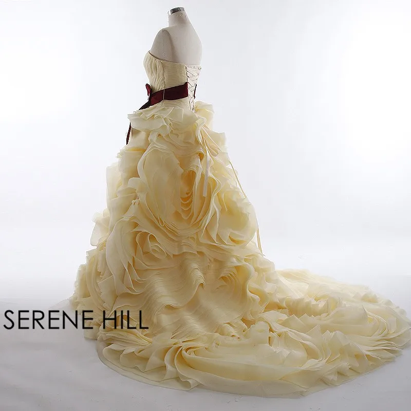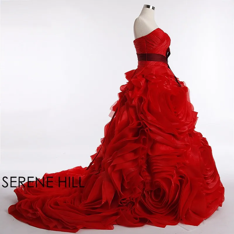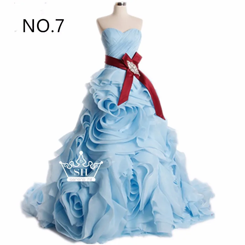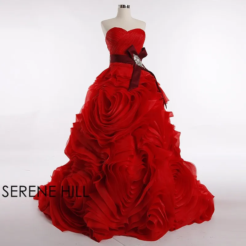 Foto real 2025 Diseño de marca Robe De Mariage Vestido de novia con volantes y cuentas de cristal Borgoña Vestido de novia HM6681
