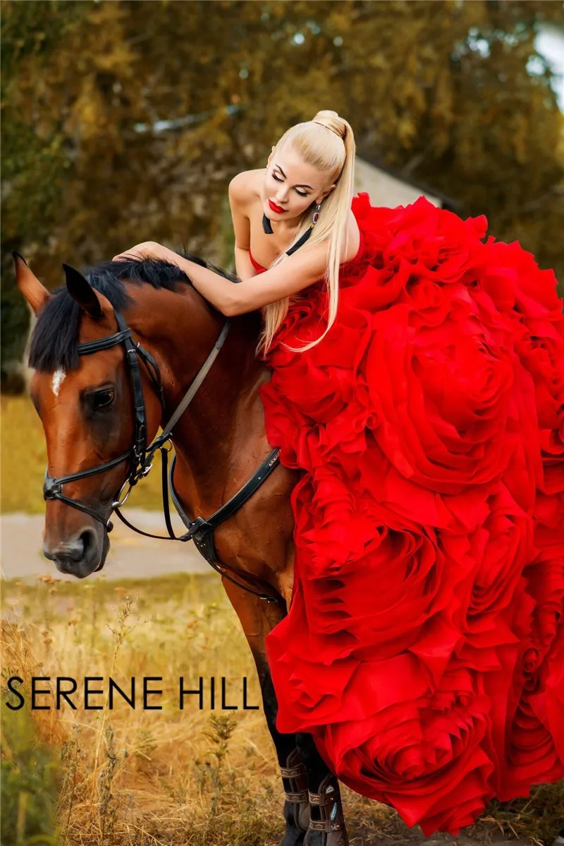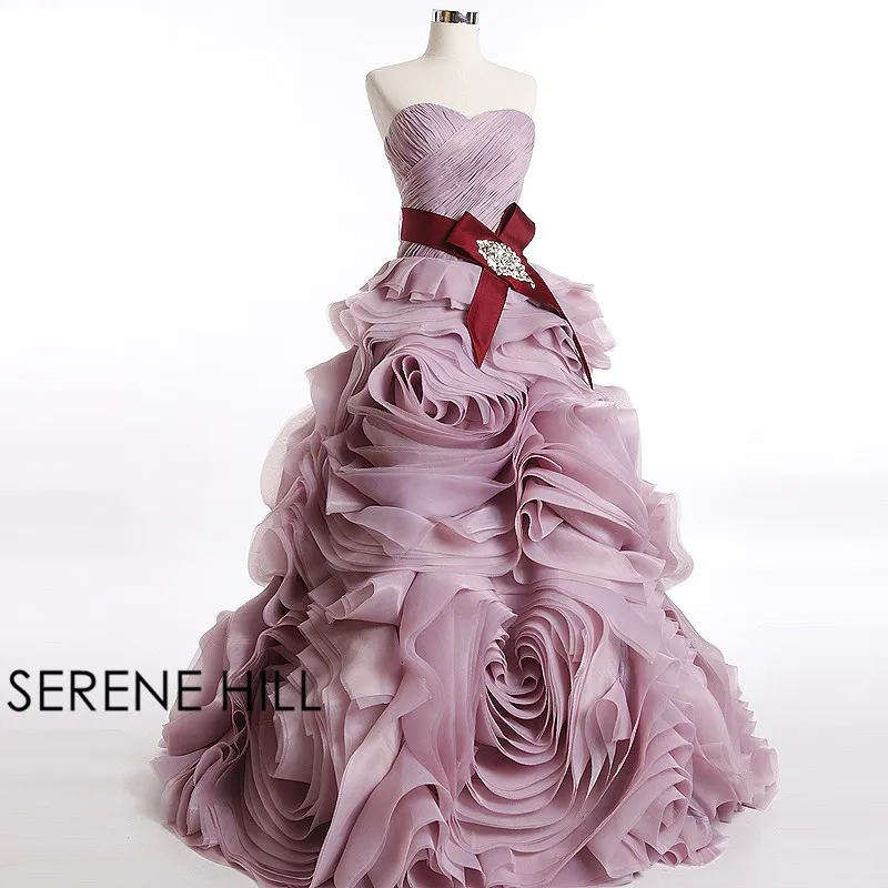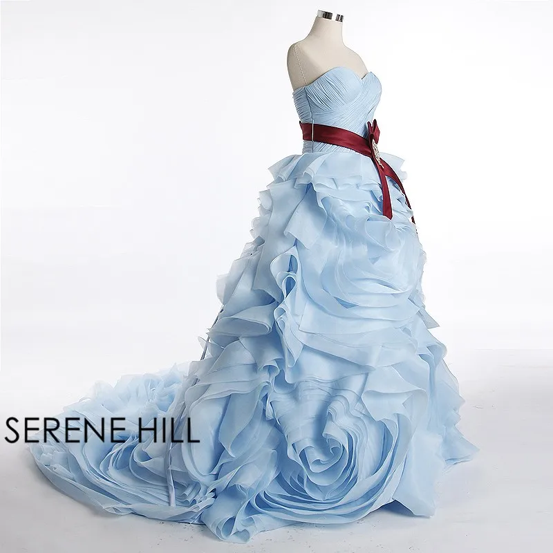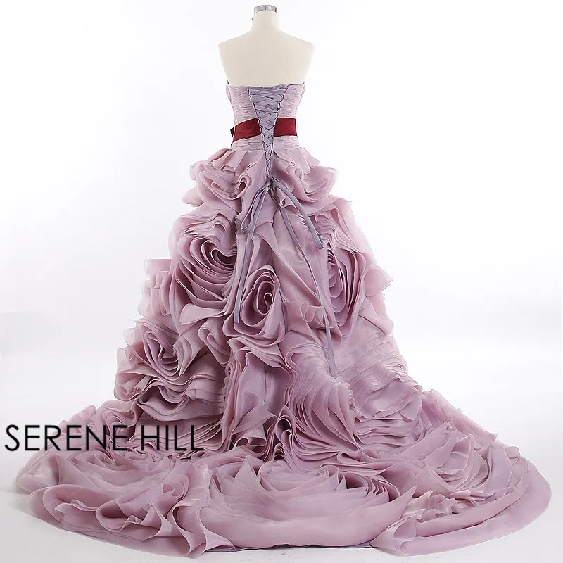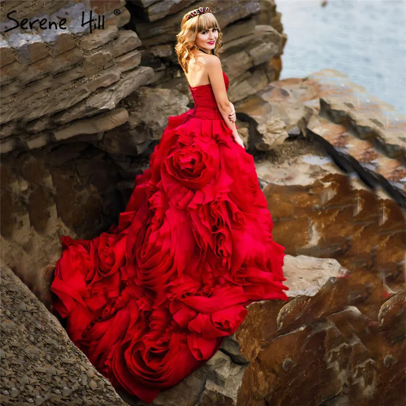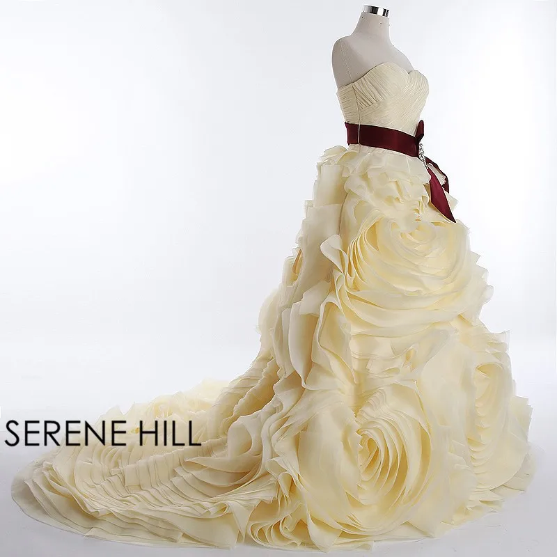 Foto real 2025 Diseño de marca Robe De Mariage Vestido de novia con volantes y cuentas de cristal Borgoña Vestido de novia HM6681