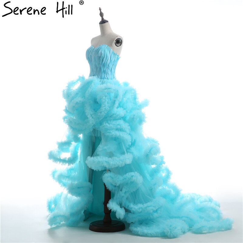 Imagen real, vestido de novia de lujo con cola larga y plumas, alto y bajo, esponjoso, 2025, HA2032