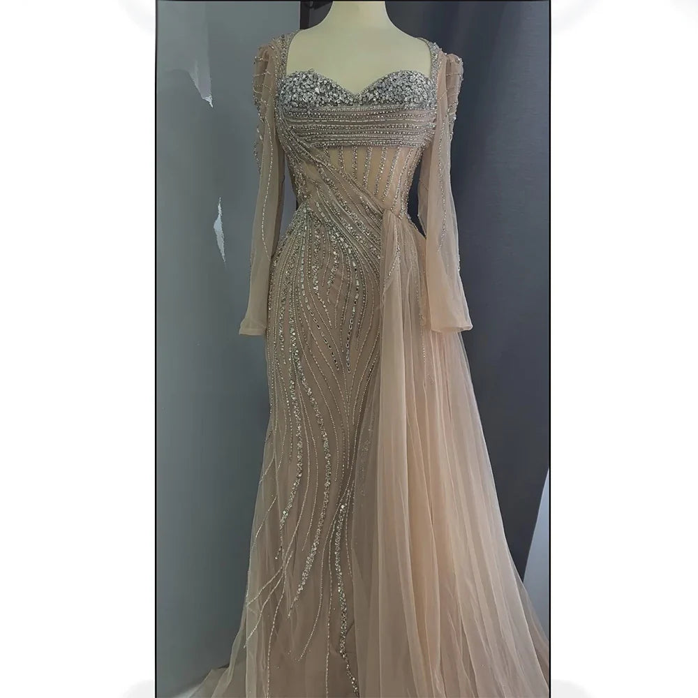 Vestido de noche árabe saudí 2025 con cuentas de cristal y sobrefalda para ocasiones formales LA72812