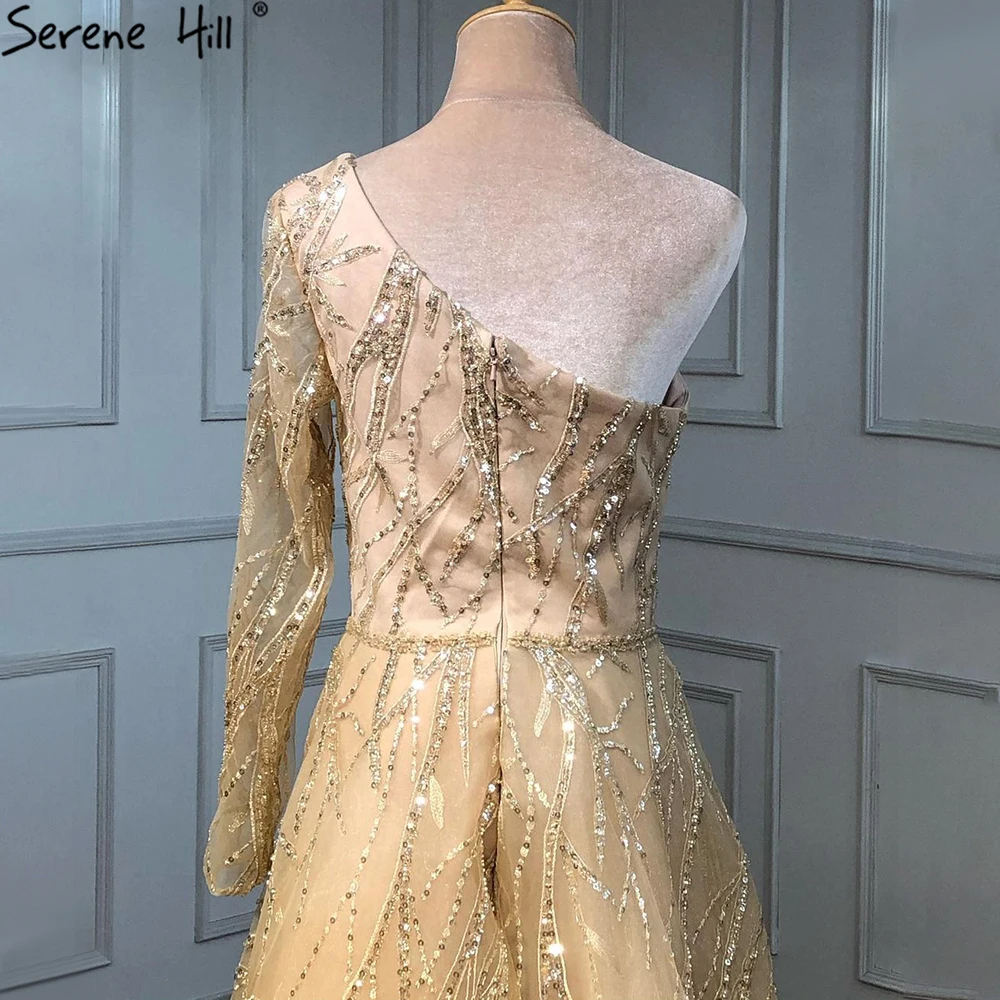 Vestidos de noche de lujo dorados de corte A, 2025, un hombro, con cuentas, sexys para mujer, fiesta LA71223