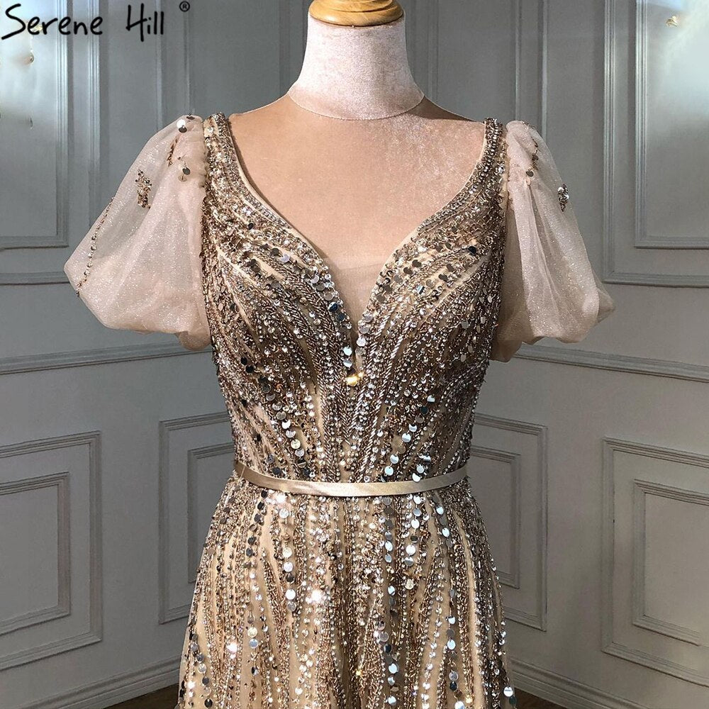 Vestidos de noche sexys de lujo dorados, 2025, mangas cortas acampanadas con cuentas, corte A, para mujer, fiesta LA70824A
