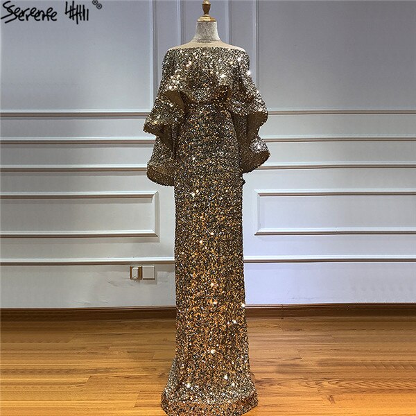 Vestidos de sirena de lujo con chal dorado, vestidos de noche brillantes LA60919, vestidos de noche largos para mujer, vestidos de fiesta