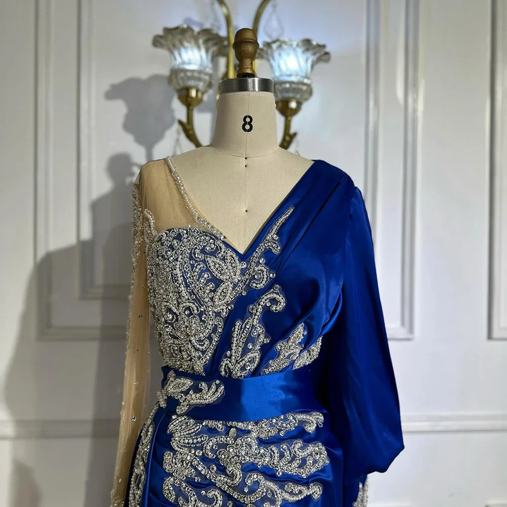 Vestidos de noche de satén verde sirena 2025, musulmanes, elegantes, con cuentas, de lujo, para mujer, fiesta, LA71370