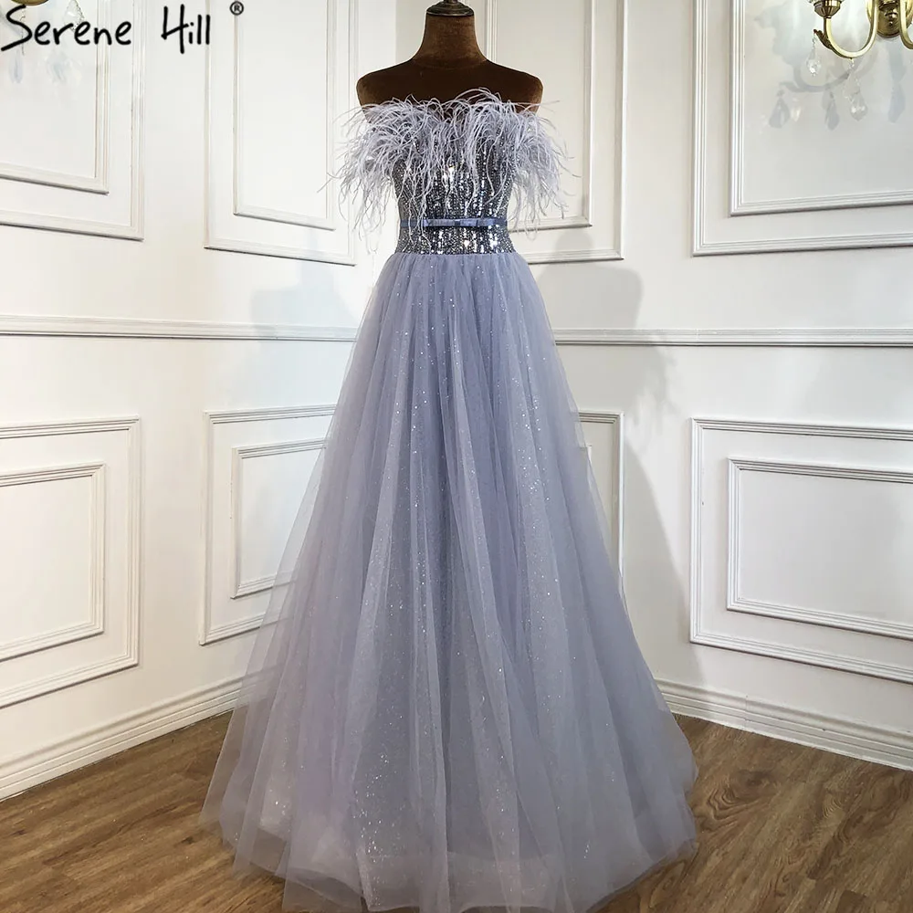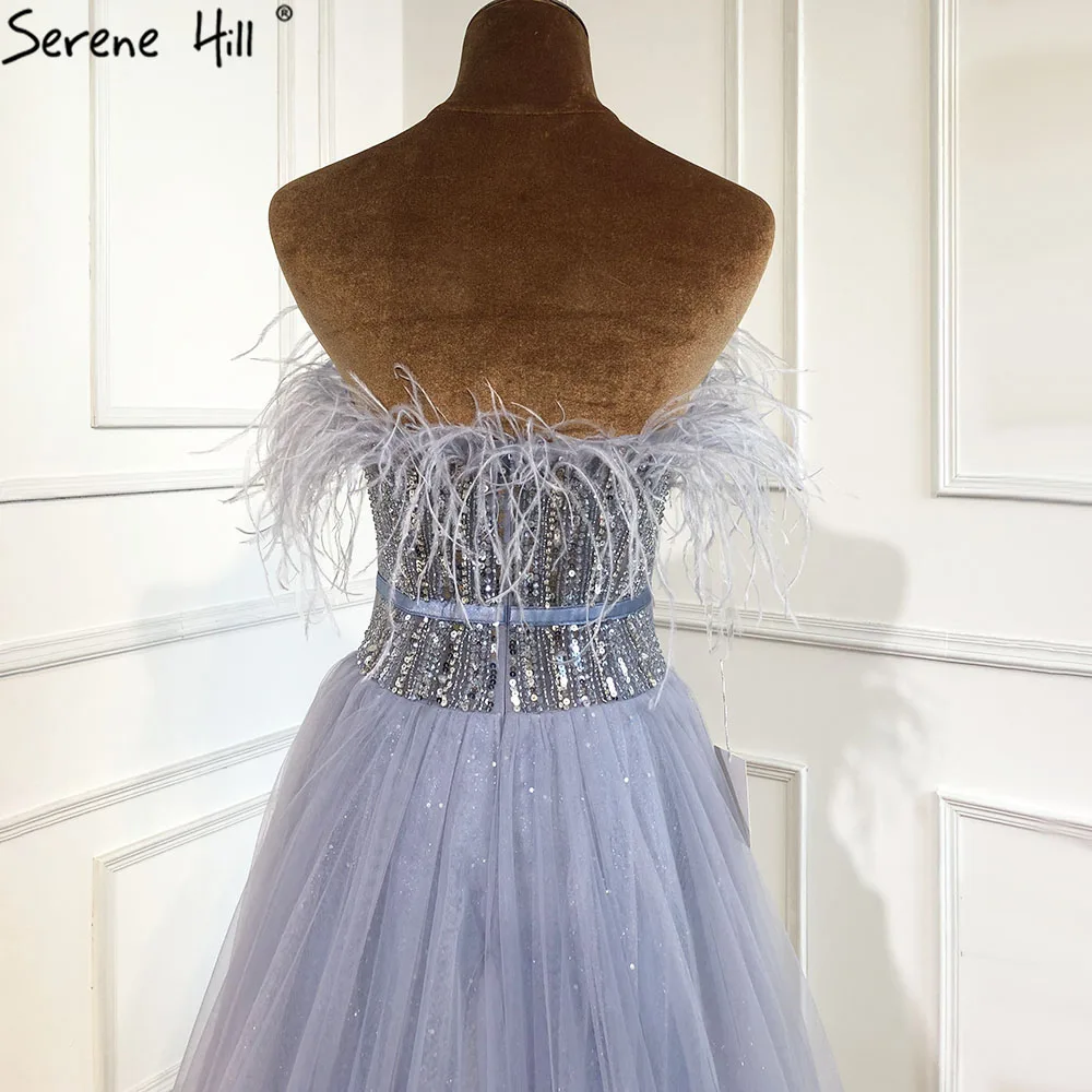 Vestidos de noche grises de lujo, corte A, 2025, con cuentas y plumas, sexys, para mujer, para bodas y fiestas LA70803