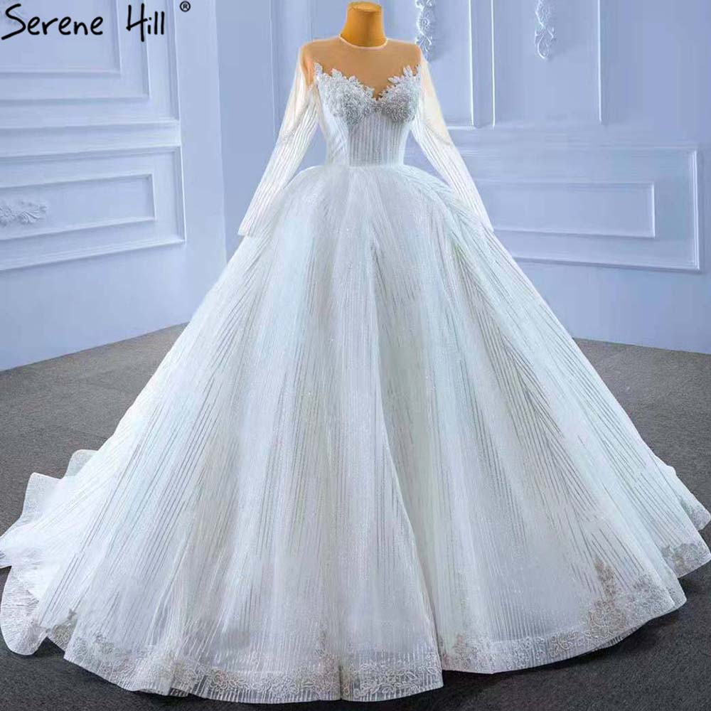 Vestidos de novia musulmanes blancos de lujo 2025 con cuentas y cordones, vestidos de novia de alta gama HM67388, hechos a medida