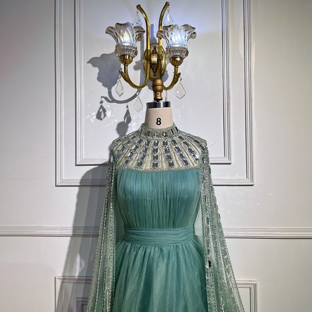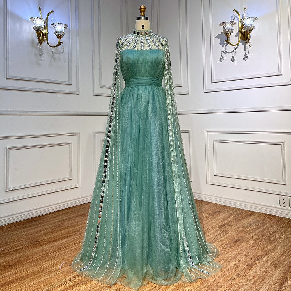 Vestido de noche morado árabe con escote en A, mangas largas, cuello alto, sexy, de lujo, con cuentas, para mujer, fiesta, LA71764