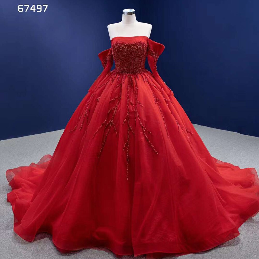 Vestido de novia rojo sexy con hombros descubiertos, perlas y cuentas de lujo, vestido de novia 2025 de alta gama, hecho a medida HM67497