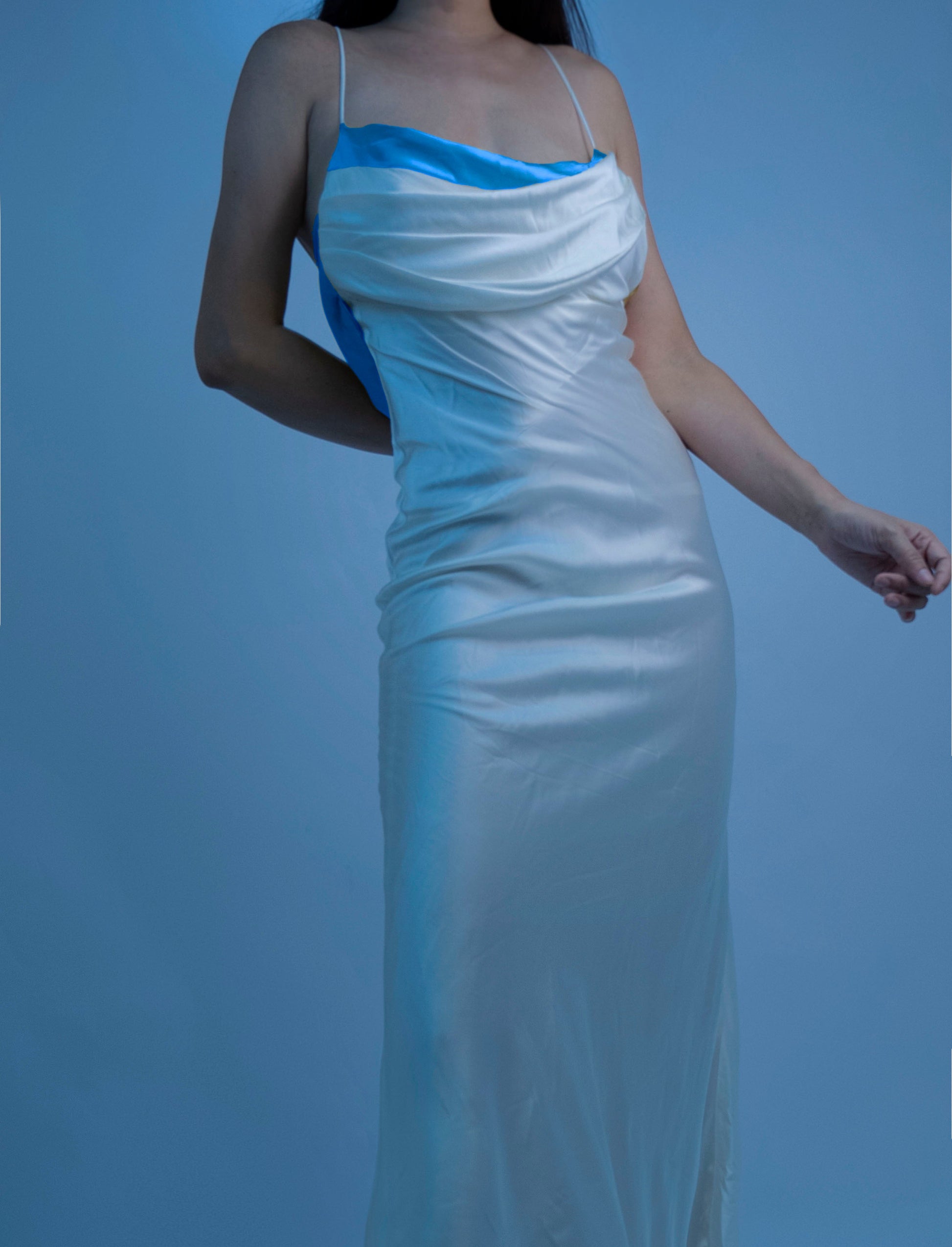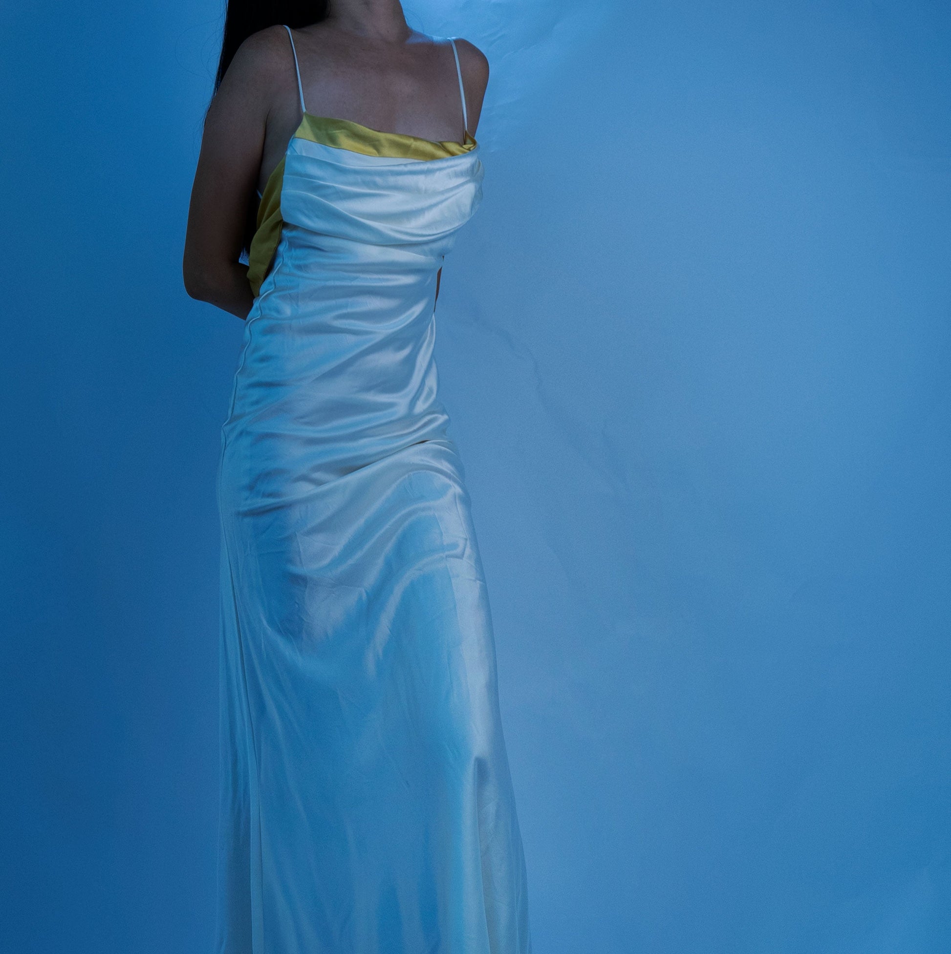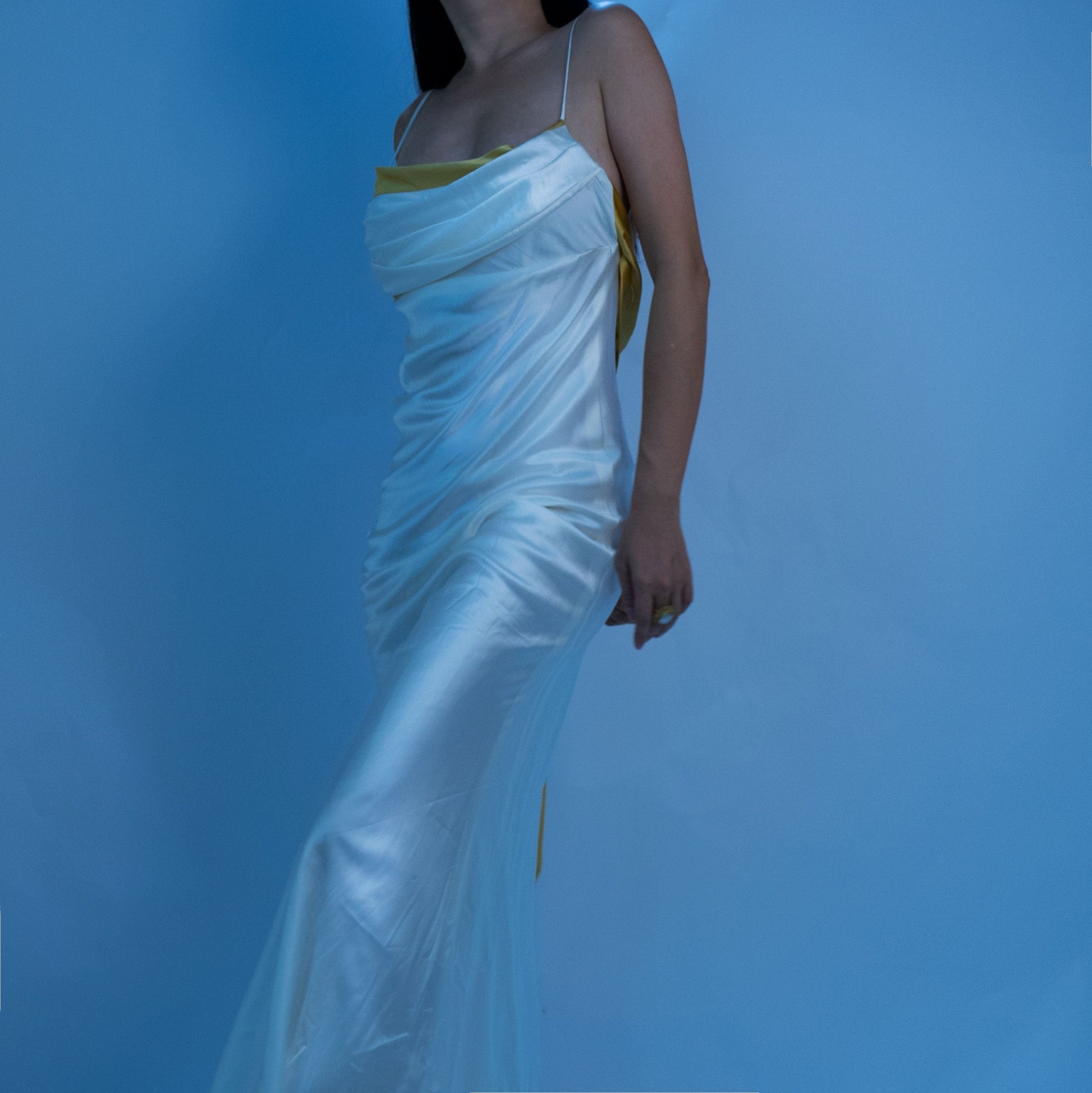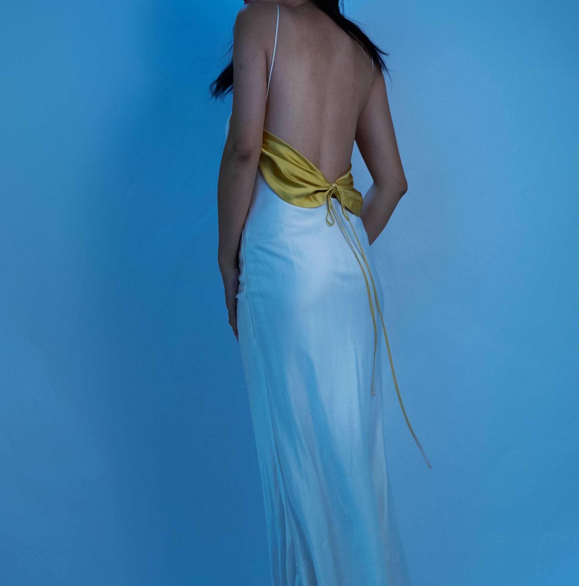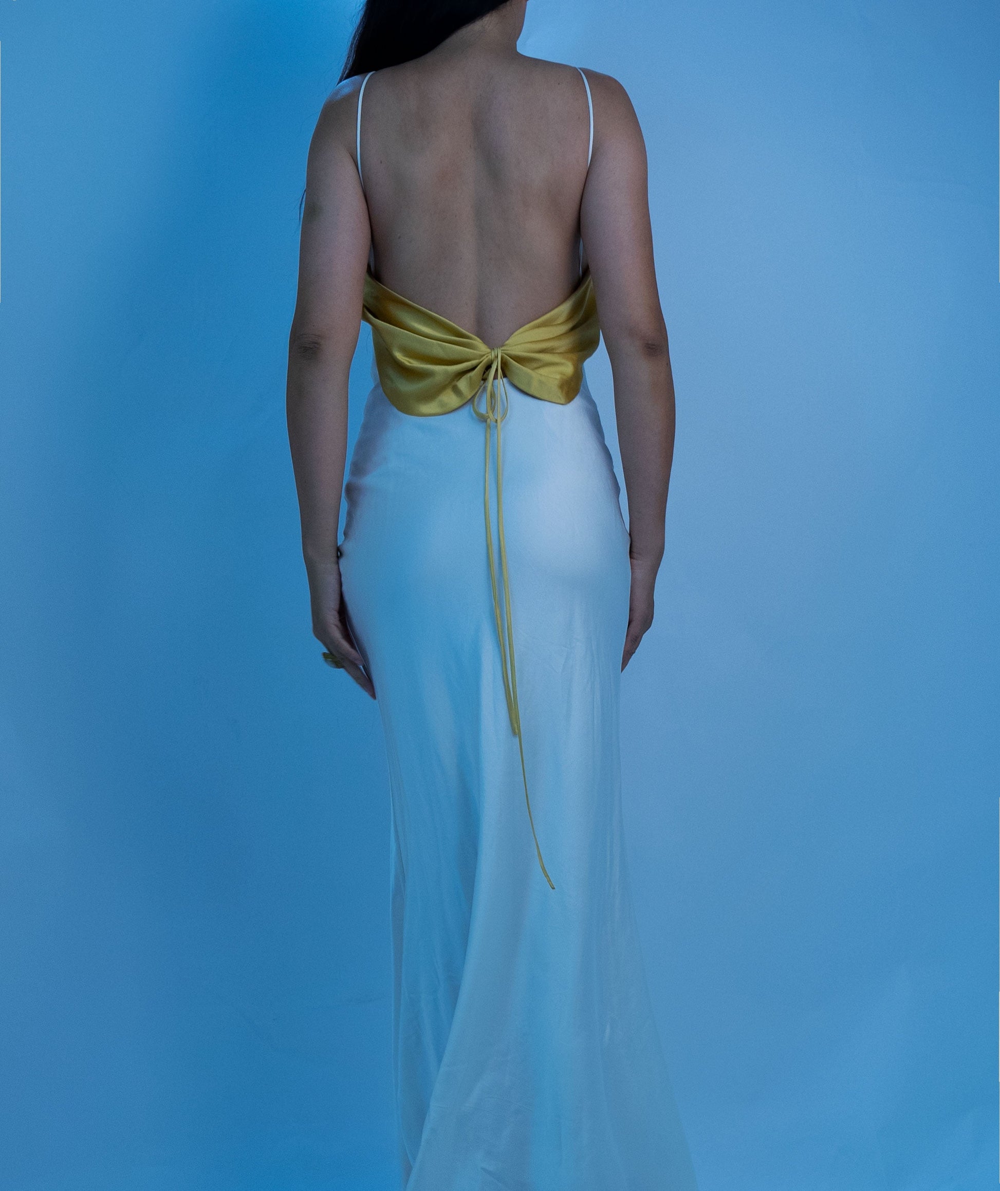 Designed with a draped butterfly shape back. it's made from mulberry silk with draped bust detailing and soft lining. and hidden adjustable straps to create the perfect fit.