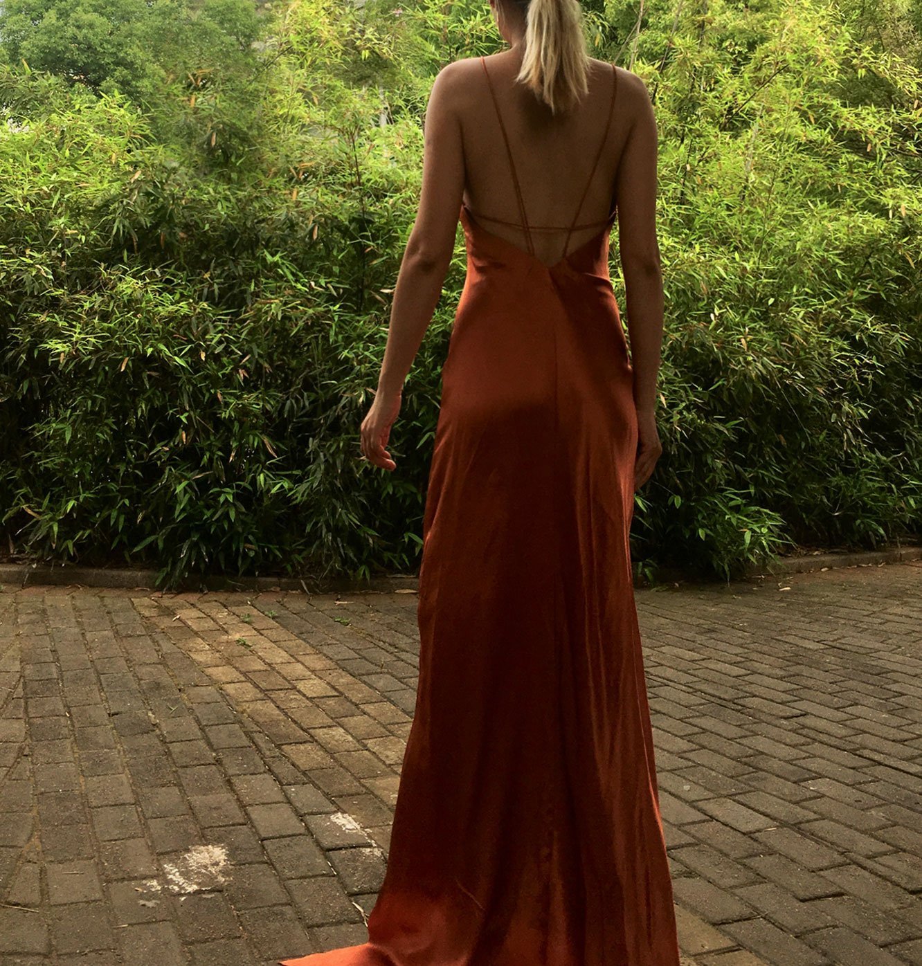 Orange Burnt Aiza Mulberry Sik Dress Gown