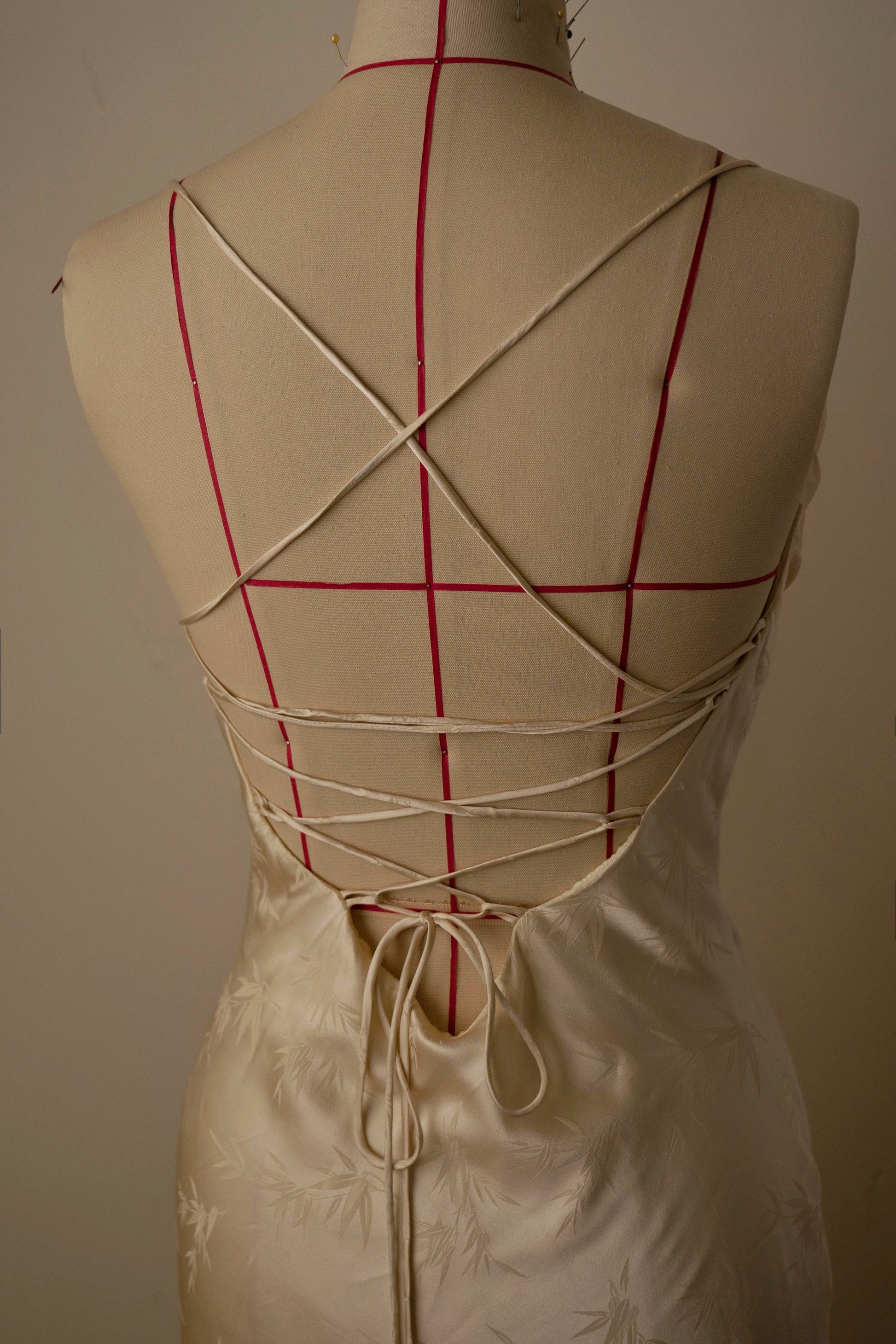 Hold the measuring tape at your hollow while a friend pulls it down to the length you want your dress.