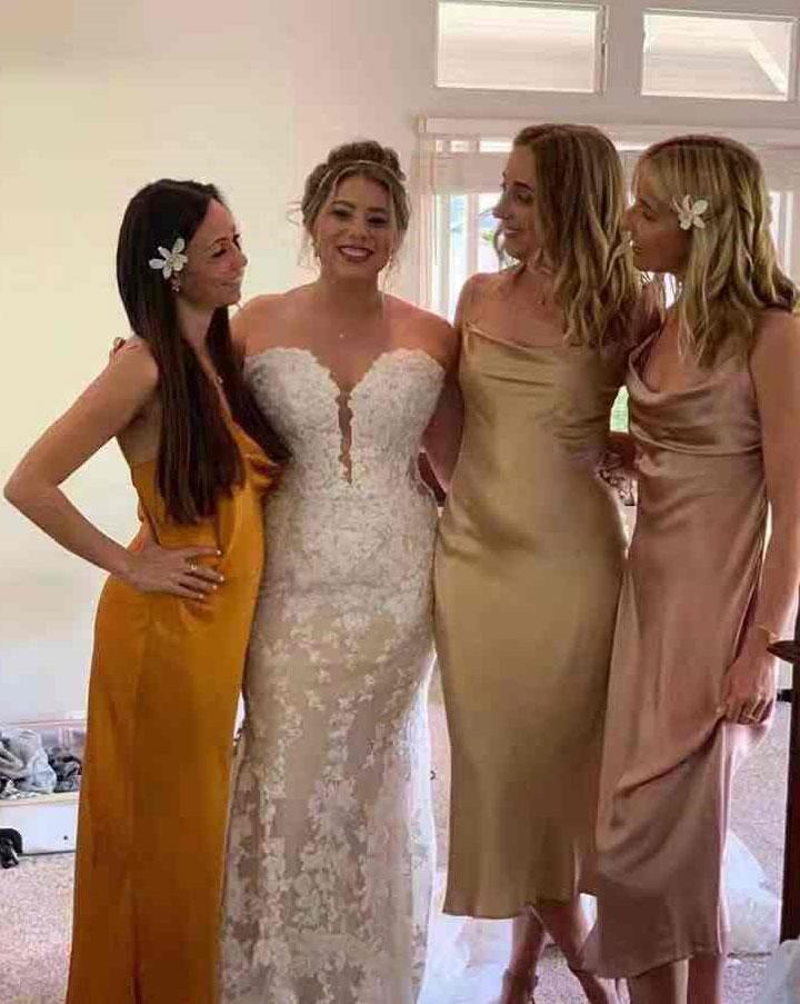 Model (172cm) wearing gown custom in #42 orange burnt color