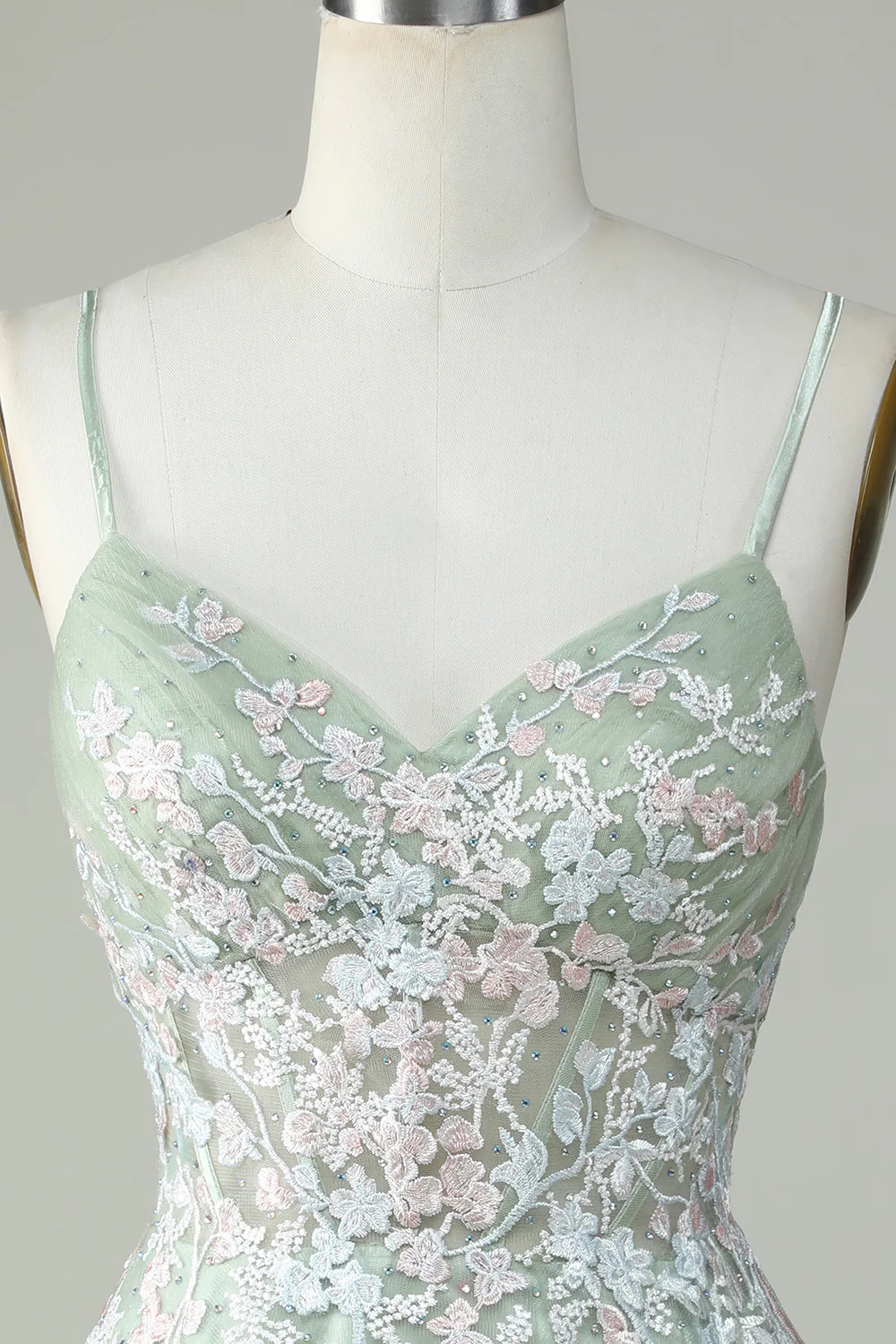 Dusty Sage Spaghetti Straps Homecoming Dress With Criss Cross Back Y2925