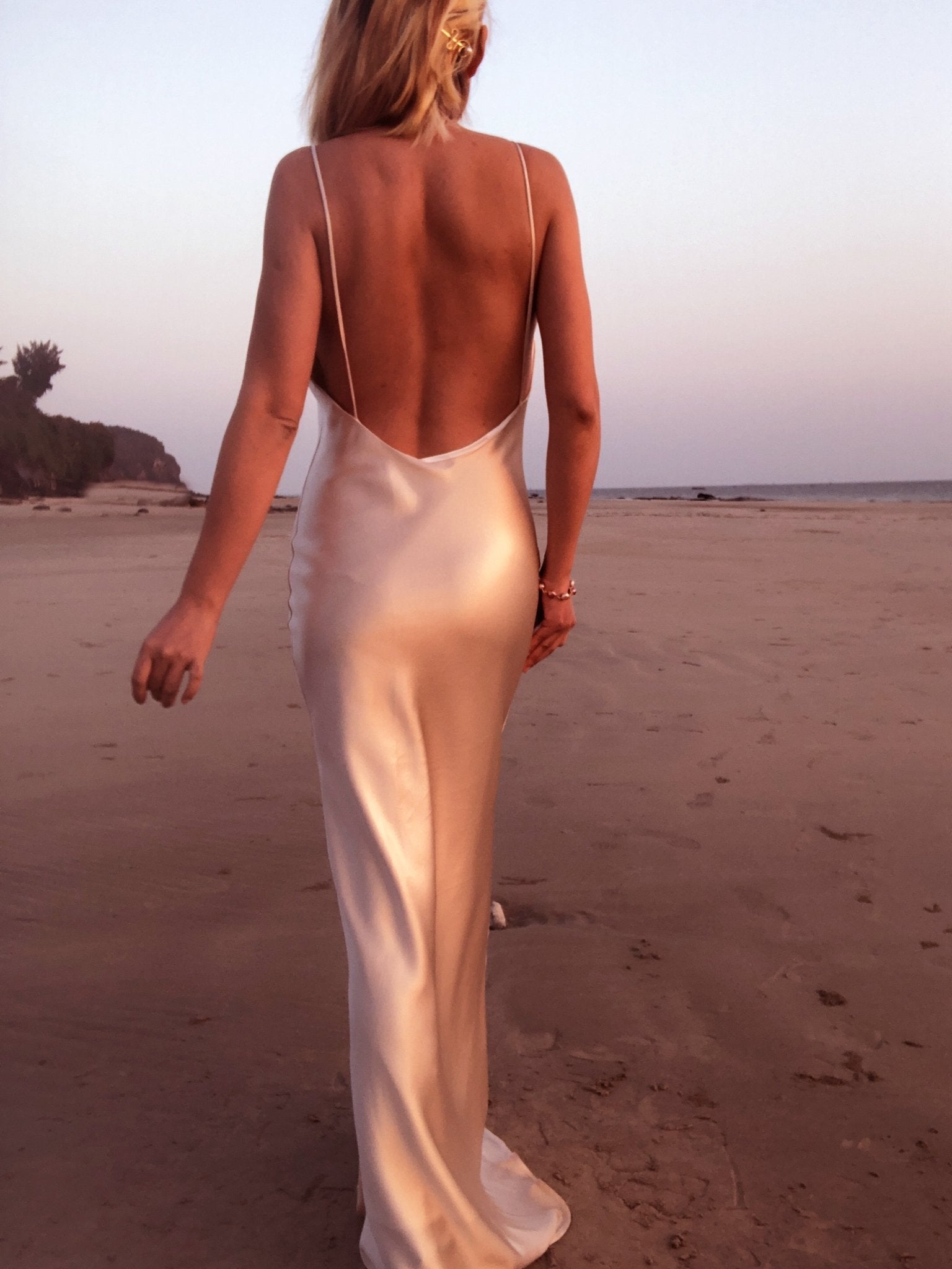The "edna" dress is made from 100% organic silk with hand crafted soft mesh puff statement sleeves. This easy-to-wear dress can be seperated into two pieces and is styled for different occations.