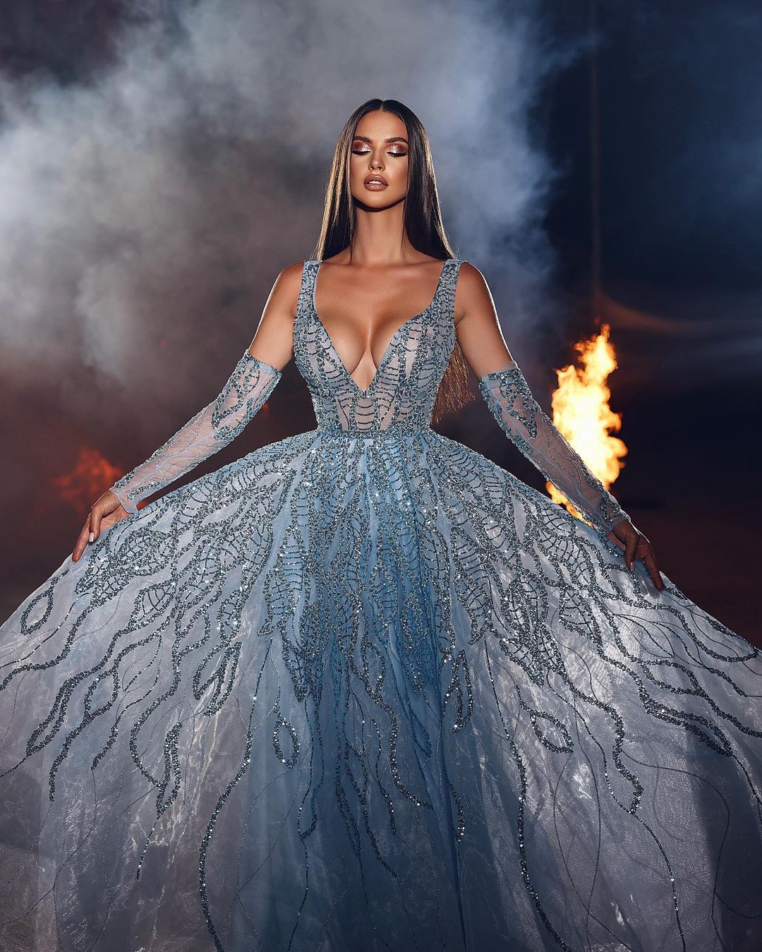 This beautiful Elegant Long A-line V-neck Straps Lace Sequined Prom Dress features exquisite lace and sequin detailing. designed to make you shine on your special night. Constructed with fitted bodice and an A-line skirt with a high slit. it offers a flattering fit. Perfect for prom and other special occasions.